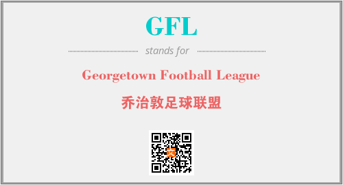 上述内容是“Georgetown Football League”作为“GFL”的缩写,解释为“乔治敦足球联盟”时的信息,以及英文缩略词GFL所代表的英文单词,其对应的中文拼音、详细解释以及在英文中的流行度和相关分类、应用领域及应用示例等。