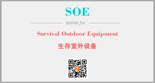 上述内容是“Survival Outdoor Equipment”作为“SOE”的缩写,解释为“生存室外设备”时的信息,以及英文缩略词SOE所代表的英文单词,其对应的中文拼音、详细解释以及在英文中的流行度和相关分类、应用领域及应用示例等。