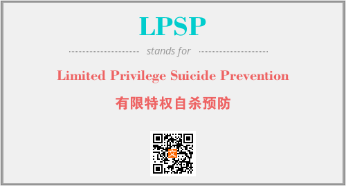 上述内容是“Limited Privilege Suicide Prevention”作为“LPSP”的缩写,解释为“有限特权自杀预防”时的信息,以及英文缩略词LPSP所代表的英文单词,其对应的中文拼音、详细解释以及在英文中的流行度和相关分类、应用领域及应用示例等。