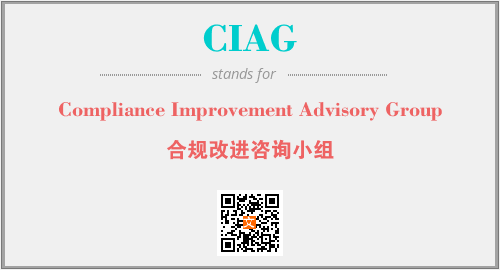 上述内容是“Compliance Improvement Advisory Group”作为“CIAG”的缩写,解释为“合规改进咨询小组”时的信息,以及英文缩略词CIAG所代表的英文单词,其对应的中文拼音、详细解释以及在英文中的流行度和相关分类、应用领域及应用示例等。