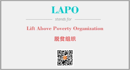 上述内容是“Lift Above Poverty Organization”作为“LAPO”的缩写,解释为“脱贫组织”时的信息,以及英文缩略词LAPO所代表的英文单词,其对应的中文拼音、详细解释以及在英文中的流行度和相关分类、应用领域及应用示例等。