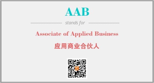 英文缩略词“AAB”经常作为“Associate of Applied Business”的英文缩写来使用,中文表示:“应用商业合伙人”。本文将详细介绍英文缩写词AAB所代表英文单词,其对应的中文拼音、详细解释以及在英语中的流行度。此外,还有关于缩略词AAB的分类、应用领域及相关应用示例等。