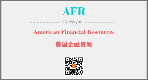 以上为American Financial Resources英文缩略词AFR的中文解释,以及该英文缩写在英语的流行度、分类和应用领域方面的信息。