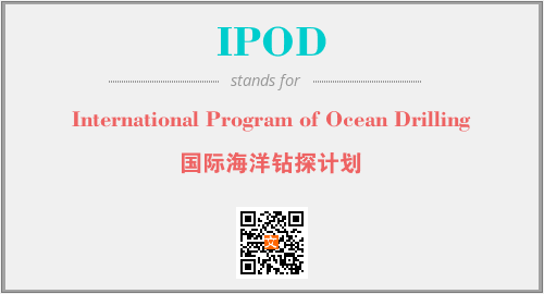 上述内容是“International Program of Ocean Drilling”作为“IPOD”的缩写,解释为“国际海洋钻探计划”时的信息,以及英文缩略词IPOD所代表的英文单词,其对应的中文拼音、详细解释以及在英文中的流行度和相关分类、应用领域及应用示例等。