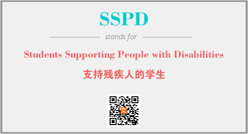 以上为Students Supporting People with Disabilities英文缩略词SSPD的中文解释,以及该英文缩写在英语的流行度、分类和应用领域方面的信息。