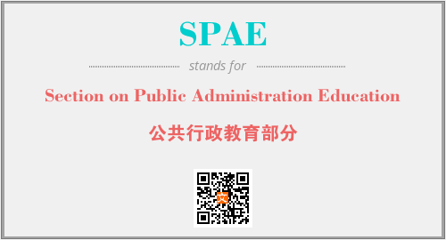 上述内容是“Section on Public Administration Education”作为“SPAE”的缩写,解释为“公共行政教育部分”时的信息,以及英文缩略词SPAE所代表的英文单词,其对应的中文拼音、详细解释以及在英文中的流行度和相关分类、应用领域及应用示例等。