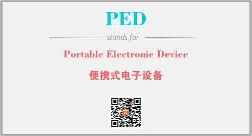 英文缩略词“PED”经常作为“Portable Electronic Device”的英文缩写来使用,中文表示:“便携式电子设备”。本文将详细介绍英文缩写词PED所代表英文单词,其对应的中文拼音、详细解释以及在英语中的流行度。此外,还有关于缩略词PED的分类、应用领域及相关应用示例等。