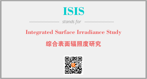 上述内容是“Integrated Surface Irradiance Study”作为“ISIS”的缩写,解释为“综合表面辐照度研究”时的信息,以及英文缩略词ISIS所代表的英文单词,其对应的中文拼音、详细解释以及在英文中的流行度和相关分类、应用领域及应用示例等。