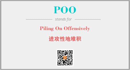 英文缩略词“POO”经常作为“Piling On Offensively”的英文缩写来使用,中文表示:“进攻性地堆积”。本文将详细介绍英文缩写词POO所代表英文单词,其对应的中文拼音、详细解释以及在英语中的流行度。此外,还有关于缩略词POO的分类、应用领域及相关应用示例等。