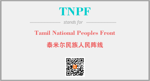 英文缩略词“TNPF”经常作为“Tamil National Peoples Front”的英文缩写来使用,中文表示:“泰米尔民族人民阵线”。本文将详细介绍英文缩写词TNPF所代表英文单词,其对应的中文拼音、详细解释以及在英语中的流行度。此外,还有关于缩略词TNPF的分类、应用领域及相关应用示例等。