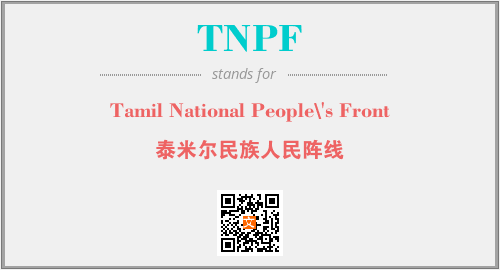 以上为Tamil National People\'s Front英文缩略词TNPF的中文解释,以及该英文缩写在英语的流行度、分类和应用领域方面的信息。