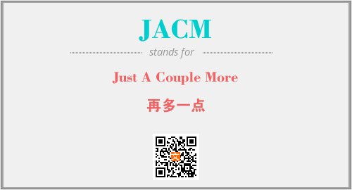 英文缩略词“JACM”经常作为“Just A Couple More”的英文缩写来使用,中文表示:“再多一点”。本文将详细介绍英文缩写词JACM所代表英文单词,其对应的中文拼音、详细解释以及在英语中的流行度。此外,还有关于缩略词JACM的分类、应用领域及相关应用示例等。