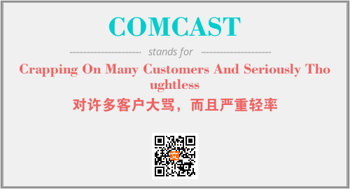 上述内容是“Crapping On Many Customers And Seriously Thoughtless”作为“COMCAST”的缩写,解释为“对许多客户大骂,而且严重轻率”时的信息,以及英文缩略词COMCAST所代表的英文单词,其对应的中文拼音、详细解释以及在英文中的流行度和相关分类、应用领域及应用示例等。