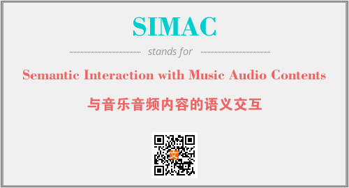 上述内容是“Semantic Interaction with Music Audio Contents”作为“SIMAC”的缩写,解释为“与音乐音频内容的语义交互”时的信息,以及英文缩略词SIMAC所代表的英文单词,其对应的中文拼音、详细解释以及在英文中的流行度和相关分类、应用领域及应用示例等。
