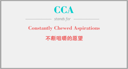 以上为Constantly Chewed Aspirations英文缩略词CCA的中文解释,以及该英文缩写在英语的流行度、分类和应用领域方面的信息。