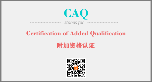 英文缩略词“CAQ”经常作为“Certification of Added Qualification”的英文缩写来使用,中文表示:“附加资格认证”。本文将详细介绍英文缩写词CAQ所代表英文单词,其对应的中文拼音、详细解释以及在英语中的流行度。此外,还有关于缩略词CAQ的分类、应用领域及相关应用示例等。