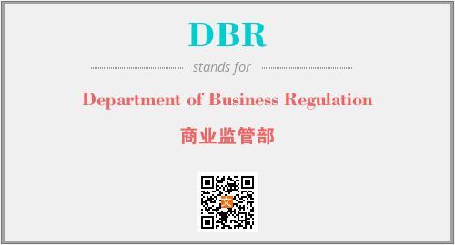 上述内容是“Department of Business Regulation”作为“DBR”的缩写,解释为“商业监管部”时的信息,以及英文缩略词DBR所代表的英文单词,其对应的中文拼音、详细解释以及在英文中的流行度和相关分类、应用领域及应用示例等。
