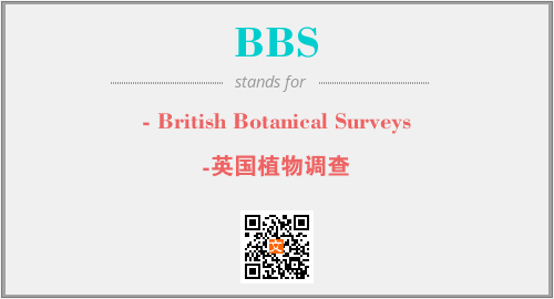 英文缩略词“BBS”经常作为“- British Botanical Surveys”的英文缩写来使用,中文表示:“-英国植物调查”。本文将详细介绍英文缩写词BBS所代表英文单词,其对应的中文拼音、详细解释以及在英语中的流行度。此外,还有关于缩略词BBS的分类、应用领域及相关应用示例等。