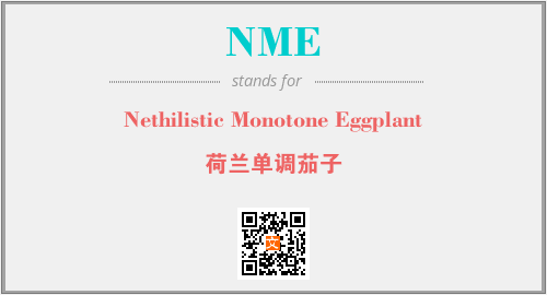 上述内容是“Nethilistic Monotone Eggplant”作为“NME”的缩写,解释为“荷兰单调茄子”时的信息,以及英文缩略词NME所代表的英文单词,其对应的中文拼音、详细解释以及在英文中的流行度和相关分类、应用领域及应用示例等。