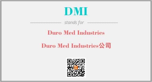 上述内容是“Duro Med Industries”作为“DMI”的缩写,解释为“Duro Med Industries公司”时的信息,以及英文缩略词DMI所代表的英文单词,其对应的中文拼音、详细解释以及在英文中的流行度和相关分类、应用领域及应用示例等。