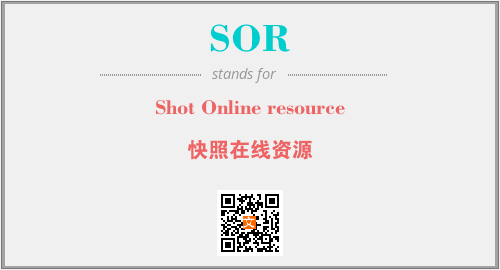 上述内容是“Shot Online resource”作为“SOR”的缩写,解释为“快照在线资源”时的信息,以及英文缩略词SOR所代表的英文单词,其对应的中文拼音、详细解释以及在英文中的流行度和相关分类、应用领域及应用示例等。