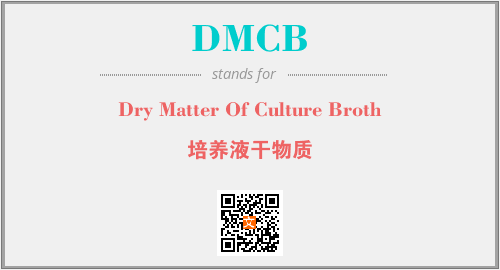 以上为Dry Matter Of Culture Broth英文缩略词DMCB的中文解释,以及该英文缩写在英语的流行度、分类和应用领域方面的信息。