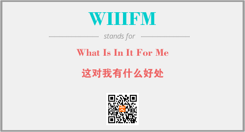 以上为What Is In It For Me英文缩略词WIIIFM的中文解释,以及该英文缩写在英语的流行度、分类和应用领域方面的信息。