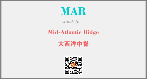 上述内容是“Mid-Atlantic Ridge”作为“MAR”的缩写,解释为“大西洋中脊”时的信息,以及英文缩略词MAR所代表的英文单词,其对应的中文拼音、详细解释以及在英文中的流行度和相关分类、应用领域及应用示例等。