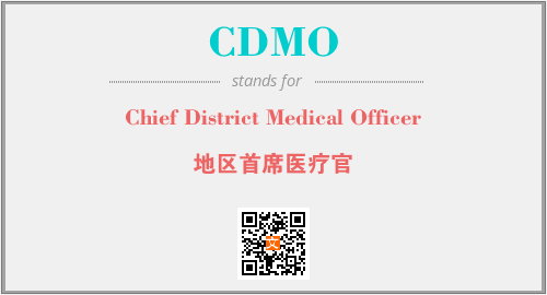 英文缩略词“CDMO”经常作为“Chief District Medical Officer”的英文缩写来使用,中文表示:“地区首席医疗官”。本文将详细介绍英文缩写词CDMO所代表英文单词,其对应的中文拼音、详细解释以及在英语中的流行度。此外,还有关于缩略词CDMO的分类、应用领域及相关应用示例等。
