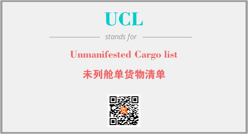 英文缩略词“UCL”经常作为“Unmanifested Cargo list”的英文缩写来使用,中文表示:“未列舱单货物清单”。本文将详细介绍英文缩写词UCL所代表英文单词,其对应的中文拼音、详细解释以及在英语中的流行度。此外,还有关于缩略词UCL的分类、应用领域及相关应用示例等。