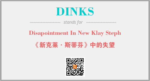 上述内容是“Disapointment In New Klay Steph”作为“DINKS”的缩写,解释为“《新克莱·斯蒂芬》中的失望”时的信息,以及英文缩略词DINKS所代表的英文单词,其对应的中文拼音、详细解释以及在英文中的流行度和相关分类、应用领域及应用示例等。