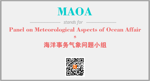英文缩略词“MAOA”经常作为“Panel on Meteorological Aspects of Ocean Affairs”的英文缩写来使用,中文表示:“海洋事务气象问题小组”。本文将详细介绍英文缩写词MAOA所代表英文单词,其对应的中文拼音、详细解释以及在英语中的流行度。此外,还有关于缩略词MAOA的分类、应用领域及相关应用示例等。