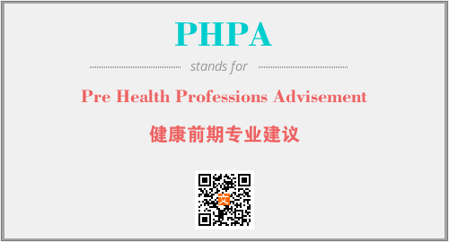 英文缩略词“PHPA”经常作为“Pre Health Professions Advisement”的英文缩写来使用,中文表示:“健康前期专业建议”。本文将详细介绍英文缩写词PHPA所代表英文单词,其对应的中文拼音、详细解释以及在英语中的流行度。此外,还有关于缩略词PHPA的分类、应用领域及相关应用示例等。