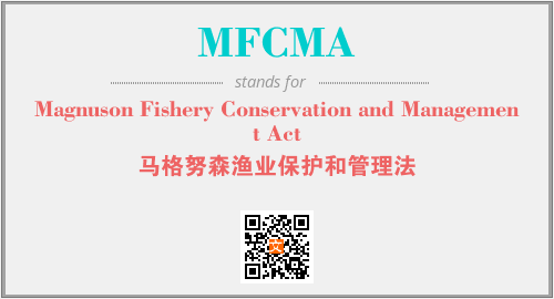 上述内容是“Magnuson Fishery Conservation and Management Act”作为“MFCMA”的缩写,解释为“马格努森渔业保护和管理法”时的信息,以及英文缩略词MFCMA所代表的英文单词,其对应的中文拼音、详细解释以及在英文中的流行度和相关分类、应用领域及应用示例等。