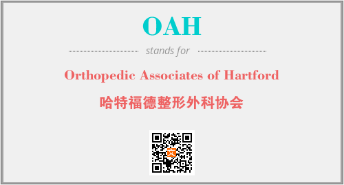 上述内容是“Orthopedic Associates of Hartford”作为“OAH”的缩写,解释为“哈特福德整形外科协会”时的信息,以及英文缩略词OAH所代表的英文单词,其对应的中文拼音、详细解释以及在英文中的流行度和相关分类、应用领域及应用示例等。