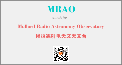 上述内容是“Mullard Radio Astronomy Observatory”作为“MRAO”的缩写,解释为“穆拉德射电天文天文台”时的信息,以及英文缩略词MRAO所代表的英文单词,其对应的中文拼音、详细解释以及在英文中的流行度和相关分类、应用领域及应用示例等。
