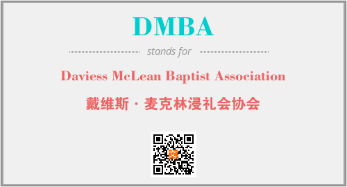 上述内容是“Daviess McLean Baptist Association”作为“DMBA”的缩写,解释为“戴维斯·麦克林浸礼会协会”时的信息,以及英文缩略词DMBA所代表的英文单词,其对应的中文拼音、详细解释以及在英文中的流行度和相关分类、应用领域及应用示例等。