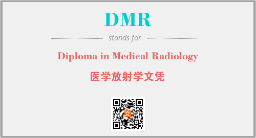 上述内容是“Diploma in Medical Radiology”作为“DMR”的缩写,解释为“医学放射学文凭”时的信息,以及英文缩略词DMR所代表的英文单词,其对应的中文拼音、详细解释以及在英文中的流行度和相关分类、应用领域及应用示例等。