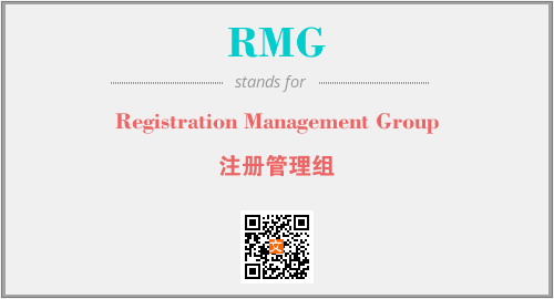 英文缩略词“RMG”经常作为“Registration Management Group”的英文缩写来使用,中文表示:“注册管理组”。本文将详细介绍英文缩写词RMG所代表英文单词,其对应的中文拼音、详细解释以及在英语中的流行度。此外,还有关于缩略词RMG的分类、应用领域及相关应用示例等。