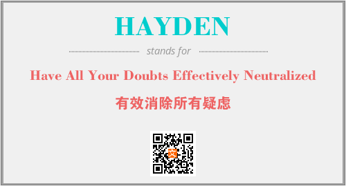 上述内容是“Have All Your Doubts Effectively Neutralized”作为“HAYDEN”的缩写,解释为“有效消除所有疑虑”时的信息,以及英文缩略词HAYDEN所代表的英文单词,其对应的中文拼音、详细解释以及在英文中的流行度和相关分类、应用领域及应用示例等。