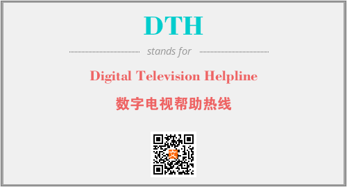 英文缩略词“DTH”经常作为“Digital Television Helpline”的英文缩写来使用,中文表示:“数字电视帮助热线”。本文将详细介绍英文缩写词DTH所代表英文单词,其对应的中文拼音、详细解释以及在英语中的流行度。此外,还有关于缩略词DTH的分类、应用领域及相关应用示例等。