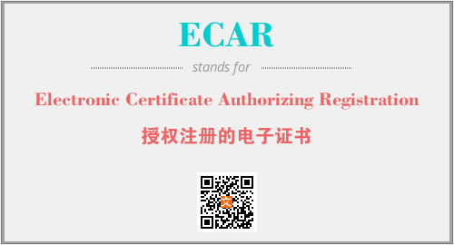英文缩略词“ECAR”经常作为“Electronic Certificate Authorizing Registration”的英文缩写来使用,中文表示:“授权注册的电子证书”。本文将详细介绍英文缩写词ECAR所代表英文单词,其对应的中文拼音、详细解释以及在英语中的流行度。此外,还有关于缩略词ECAR的分类、应用领域及相关应用示例等。