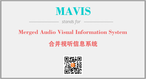上述内容是“Merged Audio Visual Information System”作为“MAVIS”的缩写,解释为“合并视听信息系统”时的信息,以及英文缩略词MAVIS所代表的英文单词,其对应的中文拼音、详细解释以及在英文中的流行度和相关分类、应用领域及应用示例等。