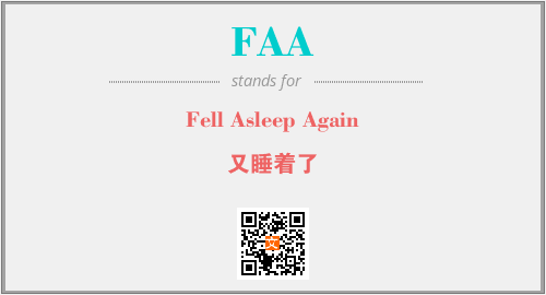 英文缩略词“FAA”经常作为“Fell Asleep Again”的英文缩写来使用,中文表示:“又睡着了”。本文将详细介绍英文缩写词FAA所代表英文单词,其对应的中文拼音、详细解释以及在英语中的流行度。此外,还有关于缩略词FAA的分类、应用领域及相关应用示例等。