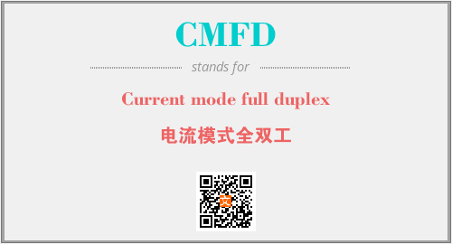 上述内容是“Current mode full duplex”作为“CMFD”的缩写,解释为“电流模式全双工”时的信息,以及英文缩略词CMFD所代表的英文单词,其对应的中文拼音、详细解释以及在英文中的流行度和相关分类、应用领域及应用示例等。