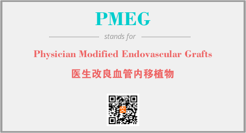 上述内容是“Physician Modified Endovascular Grafts”作为“PMEG”的缩写,解释为“医生改良血管内移植物”时的信息,以及英文缩略词PMEG所代表的英文单词,其对应的中文拼音、详细解释以及在英文中的流行度和相关分类、应用领域及应用示例等。