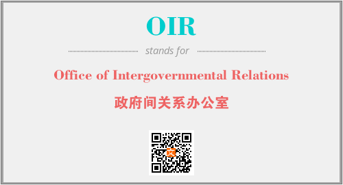 英文缩略词“OIR”经常作为“Office of Intergovernmental Relations”的英文缩写来使用,中文表示:“政府间关系办公室”。本文将详细介绍英文缩写词OIR所代表英文单词,其对应的中文拼音、详细解释以及在英语中的流行度。此外,还有关于缩略词OIR的分类、应用领域及相关应用示例等。