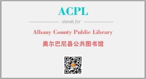 上述内容是“Albany County Public Library”作为“ACPL”的缩写,解释为“奥尔巴尼县公共图书馆”时的信息,以及英文缩略词ACPL所代表的英文单词,其对应的中文拼音、详细解释以及在英文中的流行度和相关分类、应用领域及应用示例等。