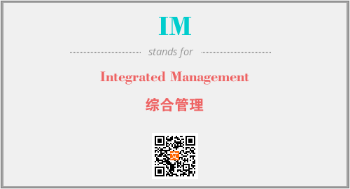 英文缩略词“IM”经常作为“Integrated Management”的英文缩写来使用,中文表示:“综合管理”。本文将详细介绍英文缩写词IM所代表英文单词,其对应的中文拼音、详细解释以及在英语中的流行度。此外,还有关于缩略词IM的分类、应用领域及相关应用示例等。
