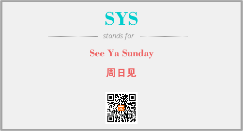 以上为See Ya Sunday英文缩略词SYS的中文解释,以及该英文缩写在英语的流行度、分类和应用领域方面的信息。